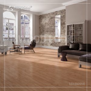 - Gạch Giả Gỗ Sáng Màu: Nếu bạn yêu thích vẻ đẹp ấm cúng của gỗ nhưng lại lo ngại về vấn đề chống ẩm và mối mọt, gạch giả gỗ (thường là gạch porcelain) tông màu sáng như sồi trắng, thông vàng… là sự thay thế hoàn hảo. Lát so le theo kiểu sàn gỗ sẽ mang lại hiệu quả thẩm mỹ cao.